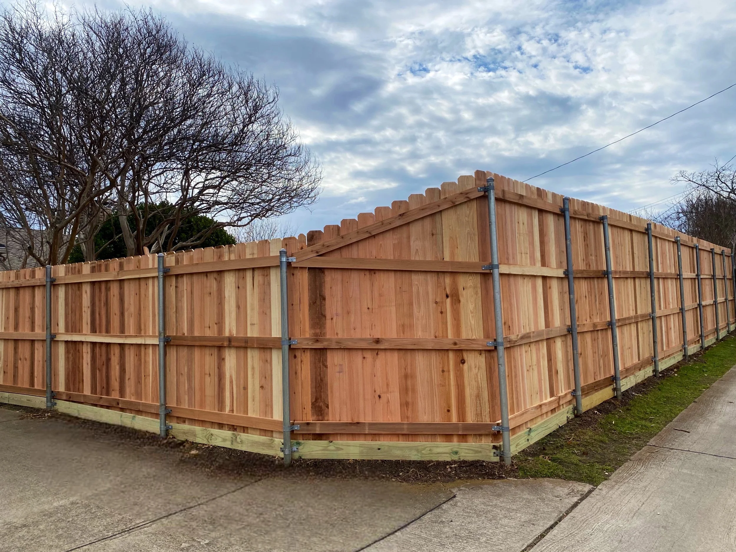 Board on Board Stair-Step Privacy Fence with Cap, Trim & Galvanized Steel Posts, Dallas Texas